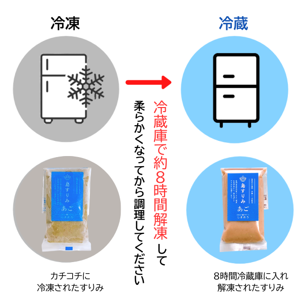 お料理の際は約8時間冷蔵庫に入れやわらかくなってからお料理ください。