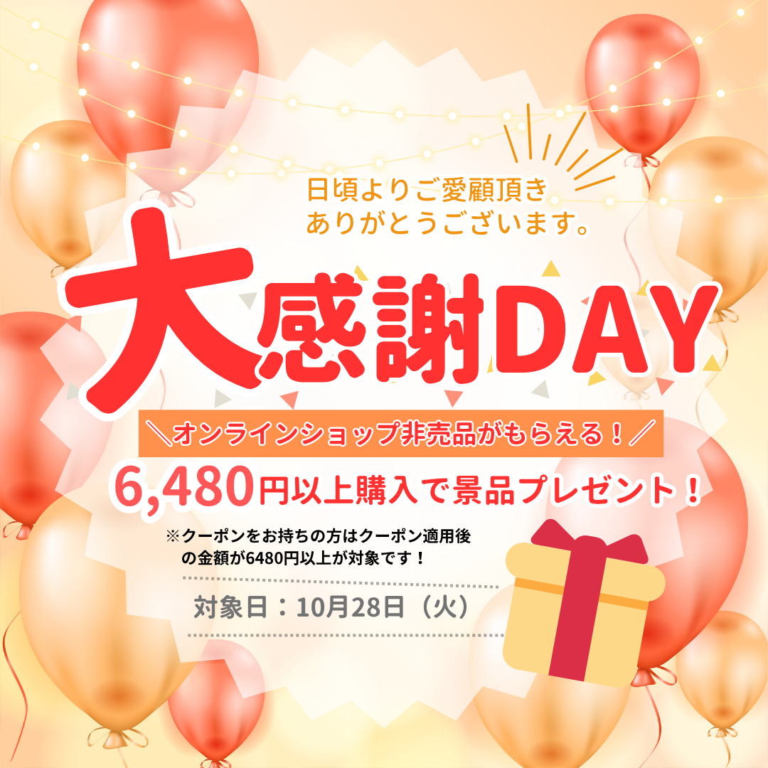 10月28日(火)にご注文&ご自宅用6480円以上お買い上げ(クーポン適用後の金額)の方限定です!