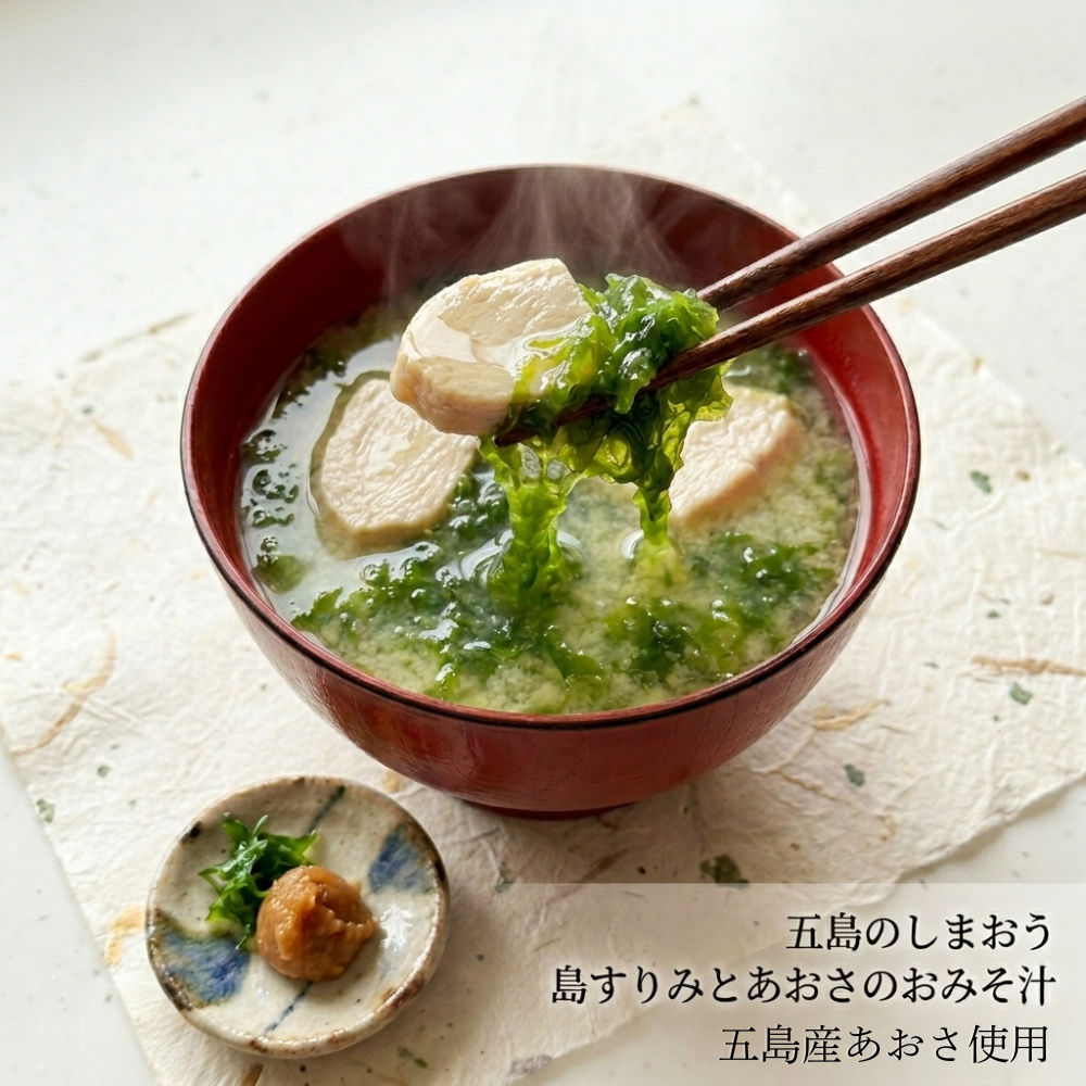あおさの楽しみ方: 「お味噌汁にひと摘み入れるだけで、五島の磯の香りが広がります。」