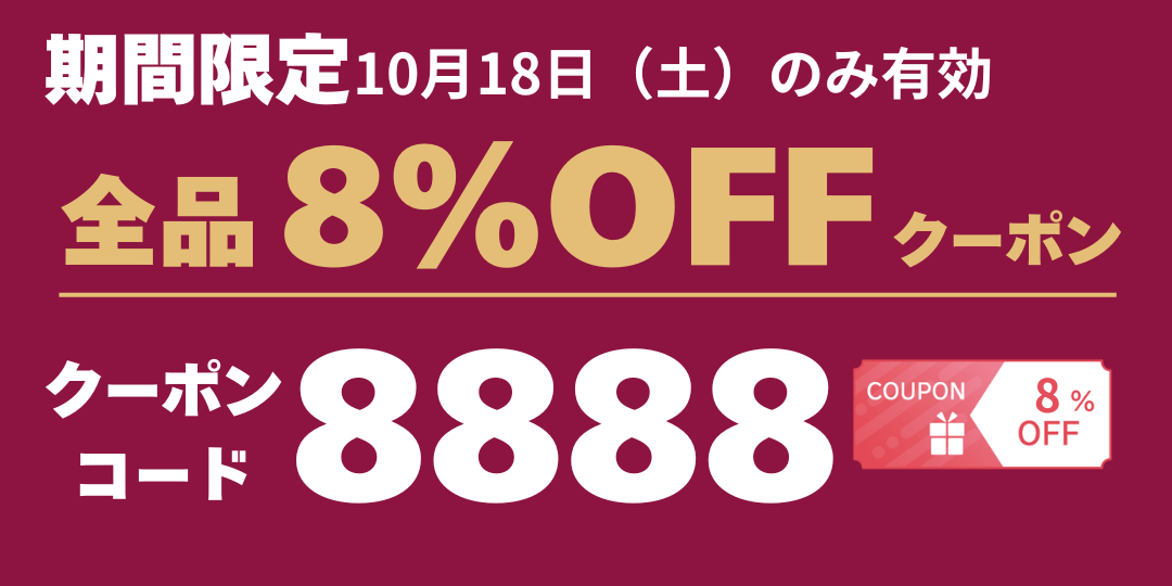 ・このクーポンは10月18日(土)0:00-23:59 の1日のみ有効。